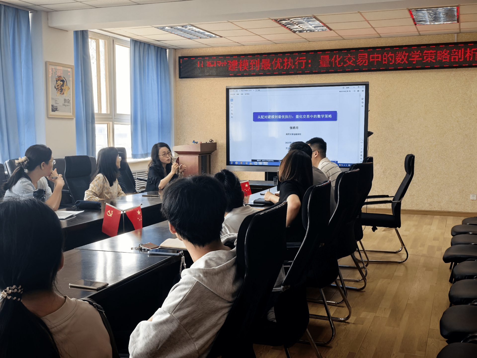 5月21日下午,理学院邀请南开大学金融学院张骅月副教授作题为“从配对建模到最优执行:量化交易中的数学策略剖析”的学术讲座。会议由副院长李晶洁主持,学院相关研究方向的教师、研究生参会。