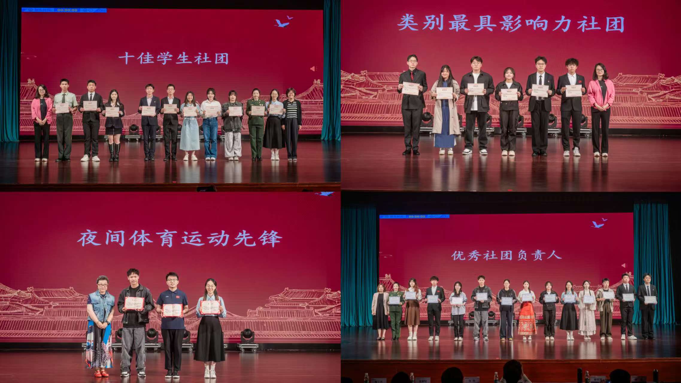 经过激烈角逐,星海艺术团等10个社团荣获“十佳学生社团”称号,书画协会等11个社团获评“最具影响力社团”;段卓雅等29位学生获得“优秀社团负责人”称号;李响、蔡浩翔、王锦毅被授予“夜间体育运动先锋”称号。