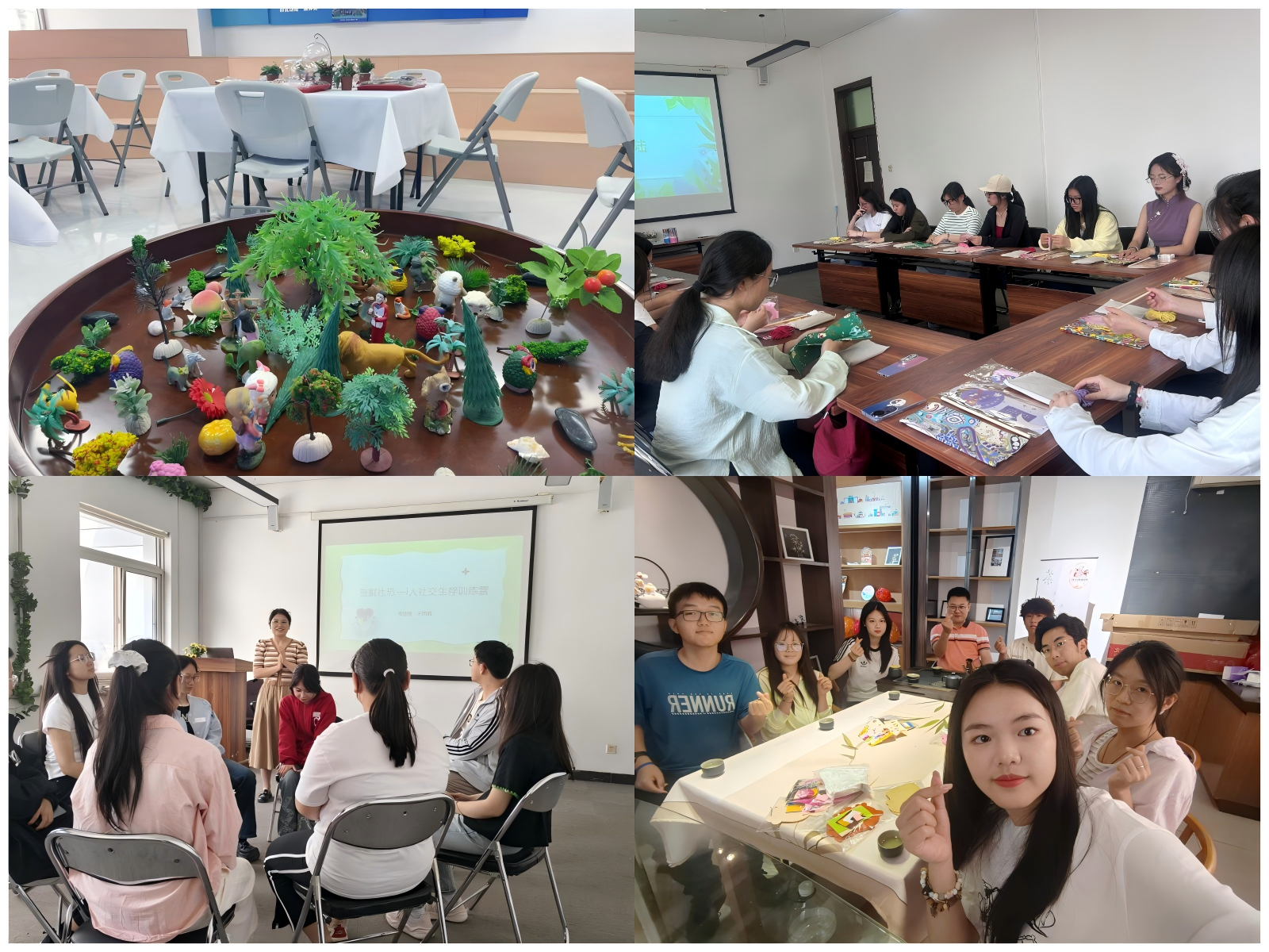 聚焦学生差异化需求,推出分层分类的心理赋能项目。针对社交困惑群体,“告别社恐”团体辅导通过情景模拟、角色扮演等方式,帮助学生突破人际壁垒。植物微景观创作工坊让参与者在方寸绿意中感受生命力量,培育责任意识与专注力。“正念疗愈”“品茗静心” 等东方智慧照进当代青年心灵,在古今交融中厚植心理成长的文化根基。心理委员职业技能大赛搭建“同台竞技,共话心理”的展示舞台,心理微课征集展示活动鼓励学生化身“心理主播”,用短视频传播心理健康知识,形成“学生影响学生”的朋辈互助生态。此外,学校积极拓展校际交流,携“五心·五育”等特色成果亮相市级心理健康交流展示,在互学互鉴中提升心理育人水平。