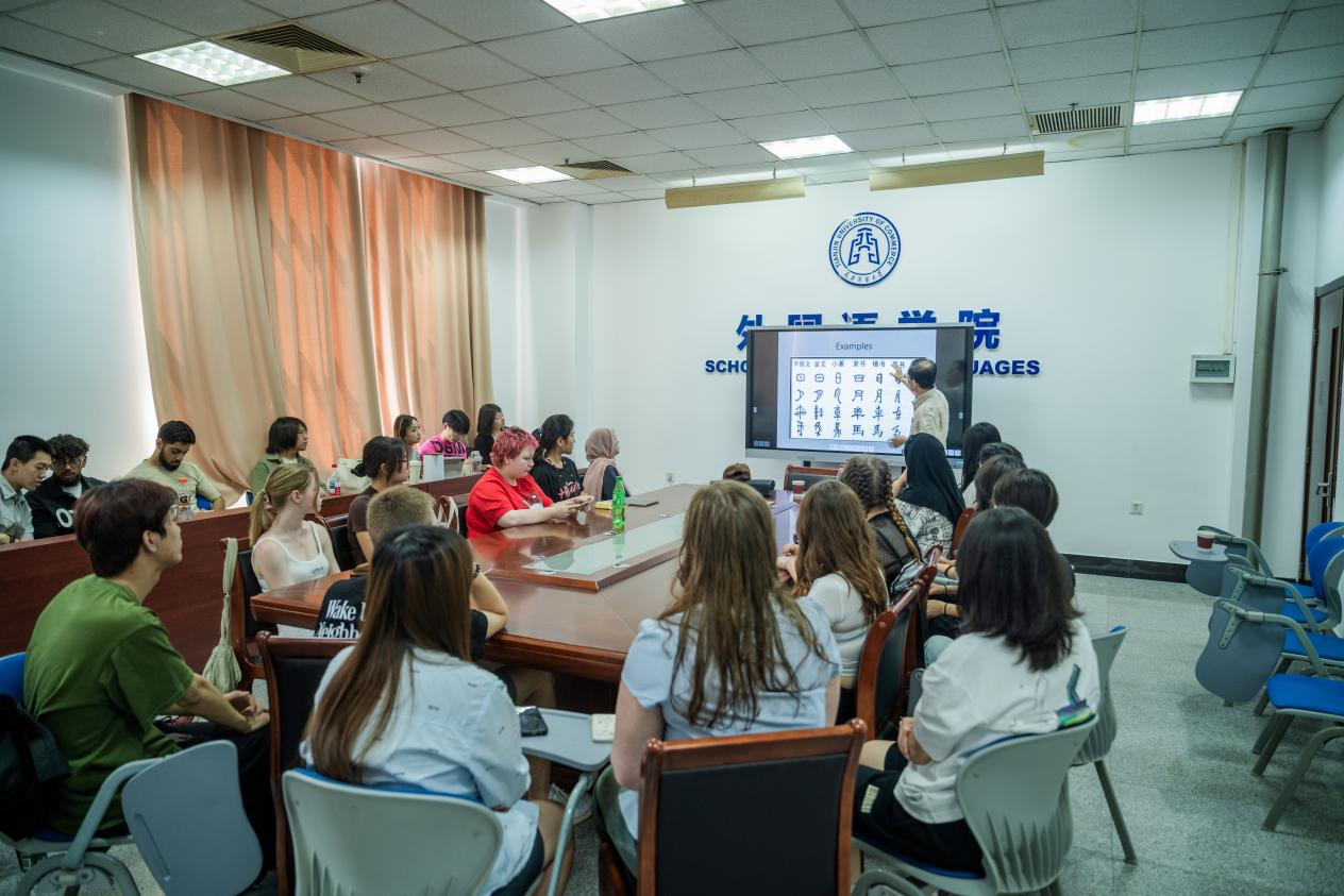 活动伊始,天津外国语大学英语学院项成东教授受邀为代表团带来了一场题为“汉字结构与中国文化”的学术讲座。项教授以其深厚的学术造诣,深入浅出、生动形象地讲解了汉字从古至今的发展脉络、独特的结构特点,以及其背后所蕴含的中国文化内涵,让英国学生对中国文字的魅力有了更深刻、更直观的认识。