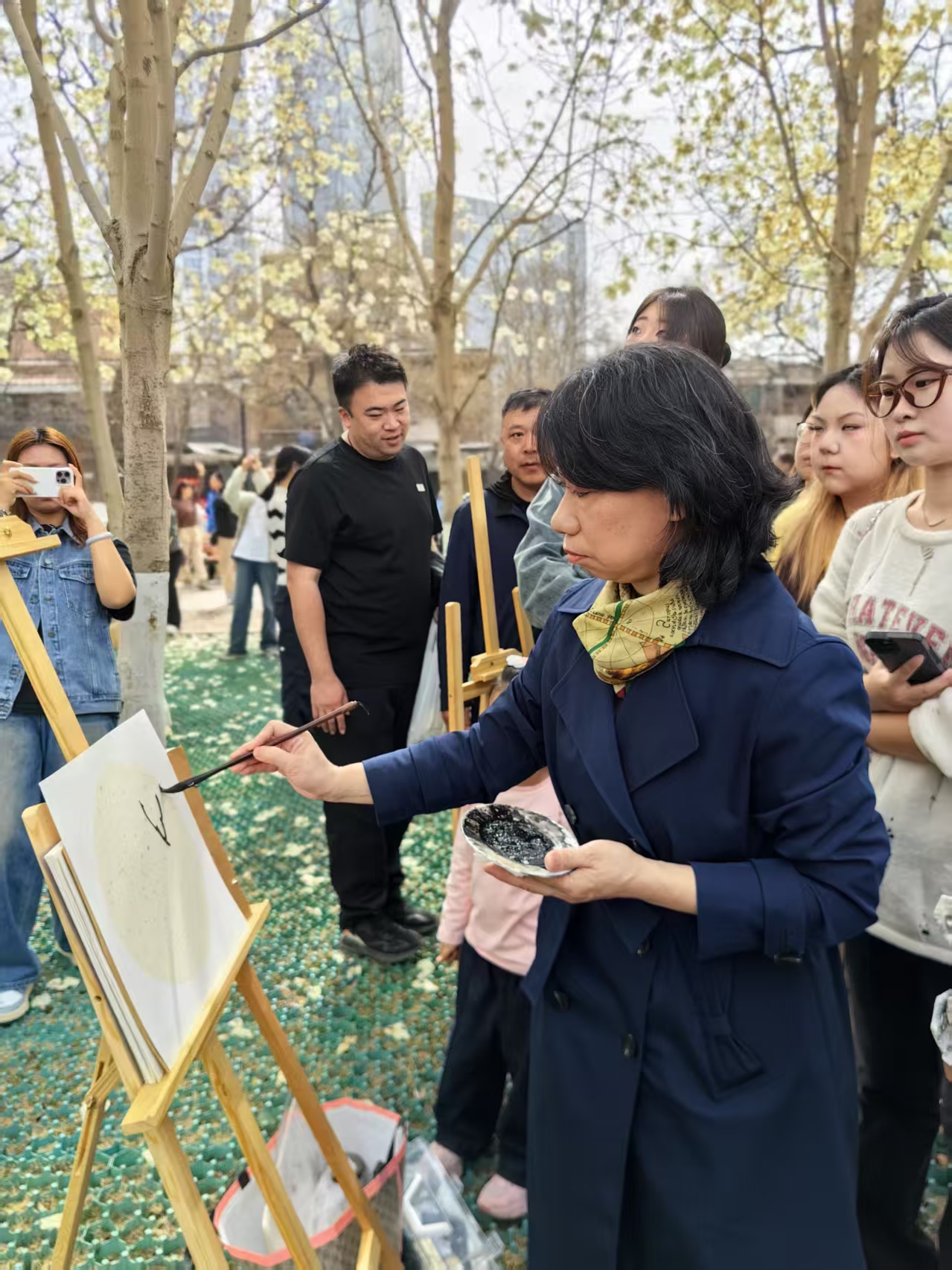 艺术学院庄雪阳老师受邀出席了本次活动,并带领学生做了现场玉兰花写生示范,还对速写天津团队的成员的写生作品进行现场点评。大家互相切磋绘画经验、分享创作思路,在交流中不断碰撞出了更多的艺术火花和创作灵感。