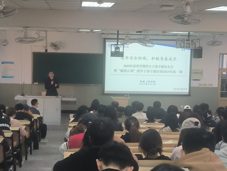 4月2日下午,机械工程学院在阶五教室召开“筑牢安全防线 护航青春成长” 2025年春季学期学生干部安全工作会暨“赋能计划”首期培训。学院党委副书记王珊、各年级辅导员,本科及研究生班干部、团学组织及学生社团骨干共200余人参会。