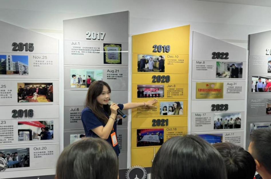 师生研学团走进“星空微渡”众创空间,非遗手作、文创产品、3D打印技术等项目,沉浸式双创场景打破传统课堂边界,点燃青少年的科创热情。步入天津市党的建设与党史故事思政课重点实验室,一幅幅生动的党史图片、一件件珍贵的党史文物、一个个激昂的党史故事,将党的光辉历程和伟大成就生动展现,小朋友们在感悟红色力量中厚植家国情怀。星空XK体育“知行”理论宣讲团成员以“愿以青春报中华”为主题开展了红色理论宣讲活动,通过红色短片《一艘红船的秘密》揭秘中国共产党建党初心,用生动语言传递信仰,为幼小心灵播撒红色火种,激发爱国情怀,形成“高校——小学” 跨学段衔接的思政育人链。
