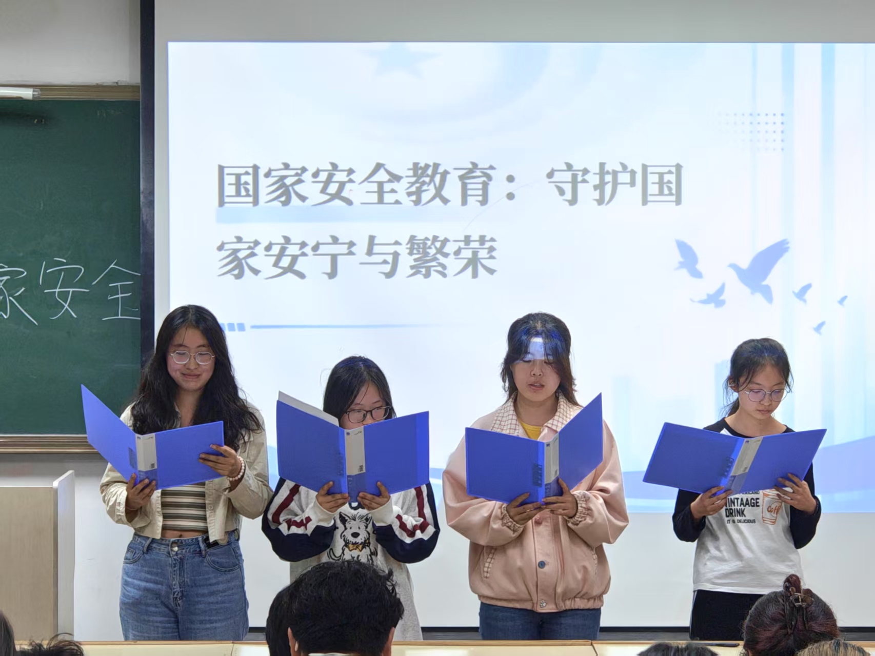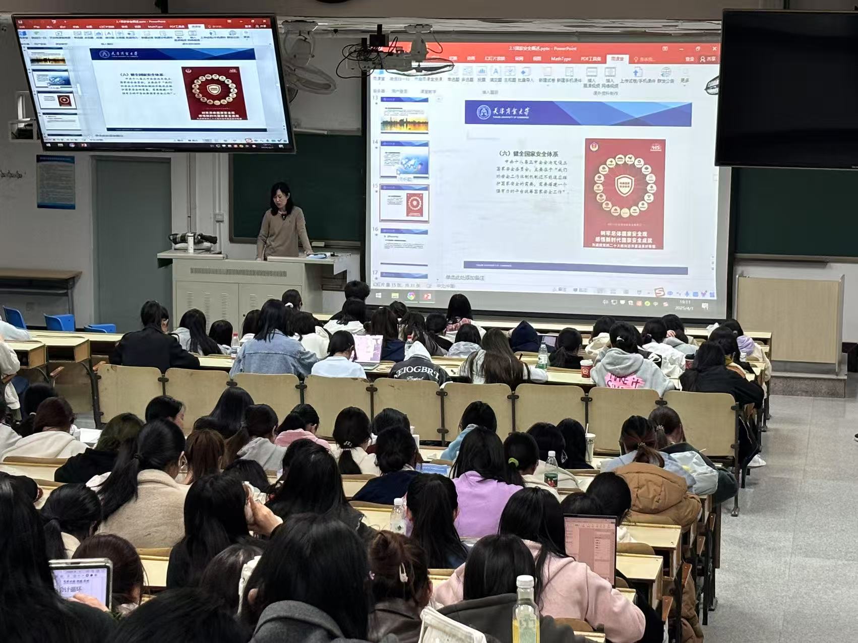 院党委副书记王璐为2024级全体本科生讲授“国家安全与青年责任”专题讲座。讲座以总体国家安全观为核心,结合国际形势和典型案例,深度剖析网络安全、意识形态安全等重点领域风险,并通过互动问答、视频展播等形式,引导学生牢固树立“国家安全人人有责”意识,主动提升防范能力。在全民国家安全教育主题团日活动中,学院团委组织团干部、院青马学员和入团积极分子观看《山河长安》等国家安全微视频、诗歌朗诵、知识小课堂,深入学习国家安全理念与法律法规,激发爱国情怀。学院各团支部也纷纷围绕国家安全主题开展特色活动,同学们在公开课学习与讨论分享、案例展示与剖析、知识竞答与宣誓承诺、线上连线交流心得与国家安全笔记评比的过程中,深入学习国家安全内涵,感受国家安全工作的复杂性与重要性,增强国家安全观意识和素养。