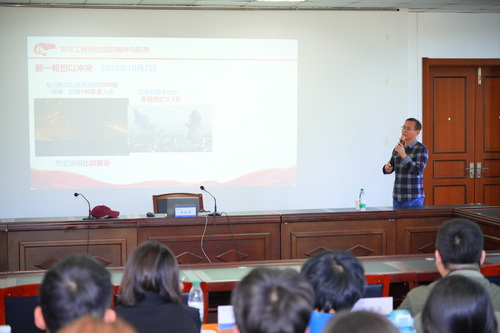 “空间红外探测器工作温度要求达到80K以下,这离不开制冷机的作用,制冷工程具有丰富的国防属性,是国防科技重要的组成部分”,洪教授长期从事空间低温制冷技术研究,课堂上,他结合丰富的科研实践经验,为同学们生动讲解制冷技术在国防领域的关键作用及相关研究成果如何在国防领域广泛应用。他还分享了自己在西部地区多年的工作经历,用实际行动生动诠释了“大国工匠”的国防精神内涵,并深情寄语同学们,“作为新时代的青年大学生,要坚定理想信念,努力学习专业知识,将个人职业发展、人生价值实现与国家需要和社会进步相结合,树立为国家科技进步和国防建设发展做贡献的远大理想。”