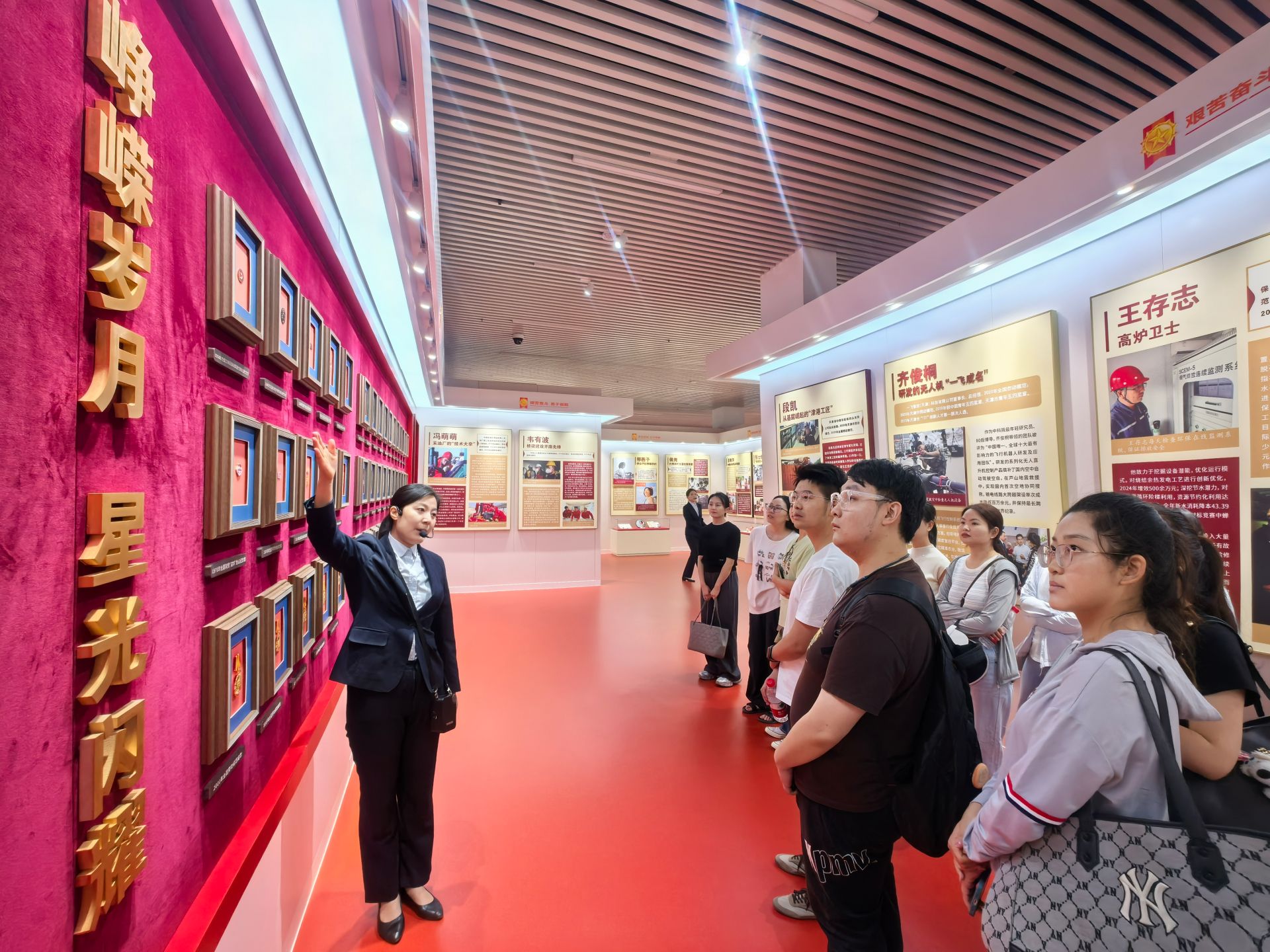 青年教师认真聆听讲解,深深地被劳动模范、先进人物的奋斗故事所感动。马克思主义学院青年教师杜先颖表示,步入“天津市弘扬劳模精神劳动精神工匠精神”教育展,那满墙的榜样人物、劳动奖章和证书在灯光下熠熠生辉。这些荣光,以其无声的重量向我诉说一个朴素而深刻的真理:劳动不仅创造物质,亦在塑造灵魂的品格,为平凡的生命赋予了不可磨灭的光泽。通过主讲人对“时代召唤”“人民楷模”“津门榜样”“拼搏奋斗”这四个展览篇章的介绍,更加深了我对“劳模精神、劳动精神、工匠精神”的认知和理解,作为一名新入职的思政课教师,我将深入挖掘和运用劳模的先进事迹、各行各业的劳动故事、大国工匠的精湛技艺等鲜活素材和生动案例,将其中的精神内核融入课堂,培育知行合一的新时代奋斗者。管理学院青年教师米学娇表示,学习“三种精神”,结合习近平总书记“实现中华民族伟大复兴需要艰苦努力”的深切嘱托,使我深受触动与激励。这三种精神不仅是时代的呼唤,更是我们作为新时代高校教师立德树人的思想武器与行动准则。它们所蕴含的崇尚实干、精益求精、无私奉献的核心价值,深刻指引着我们的教学与科研实践。作为管理学院的新生力量,我深感肩上重任:既要以身作则,锤炼过硬本领与勤勉作风;更要将这些宝贵精神传递给青年学子,培育他们具备务实、坚韧、创新的专业品格。理学院青年教师姚志博表示,参观市总工会关于"劳模精神劳动精神工匠精神"的展览,令我受到很大的鼓舞和振奋。各行各业的劳动模范们那些专注的眼神、精益求精的细节、数十年如一日的坚守,让我这个初登讲台的青年教师深感震撼。他们用岁月打磨技艺的执着,恰如教育者需要以匠心雕琢每一个教学环节。让我意识到高校教师不仅是知识的搬运工,更应是学术匠人,在浮躁的环境中守护教育的纯粹性,把教书育人这件"慢工出细活"的事业做到极致,为培养德智体全面发展的社会主义接班人贡献自己的力量。