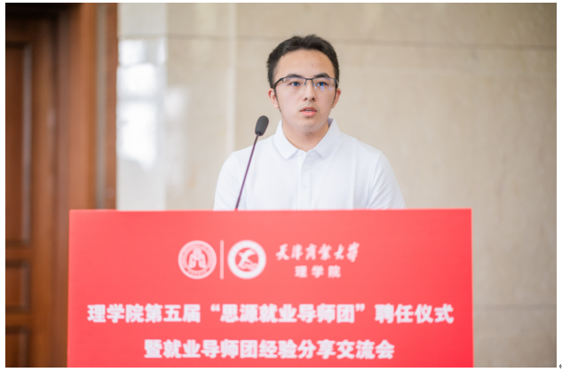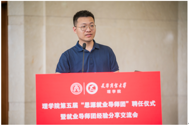 6月11日,理学院在图书馆国际报告厅举办“离校不离心·犹记星空情”第五届“思源”就业导师团聘任仪式暨经验分享交流会。理学院2016届优秀校友、天津财经大学统计学院硕士生导师熊宇航作为校友代表应邀参加。理学院领导班子成员、系室主任、教研室主任、辅导员、以及学生代表共200余人参加。