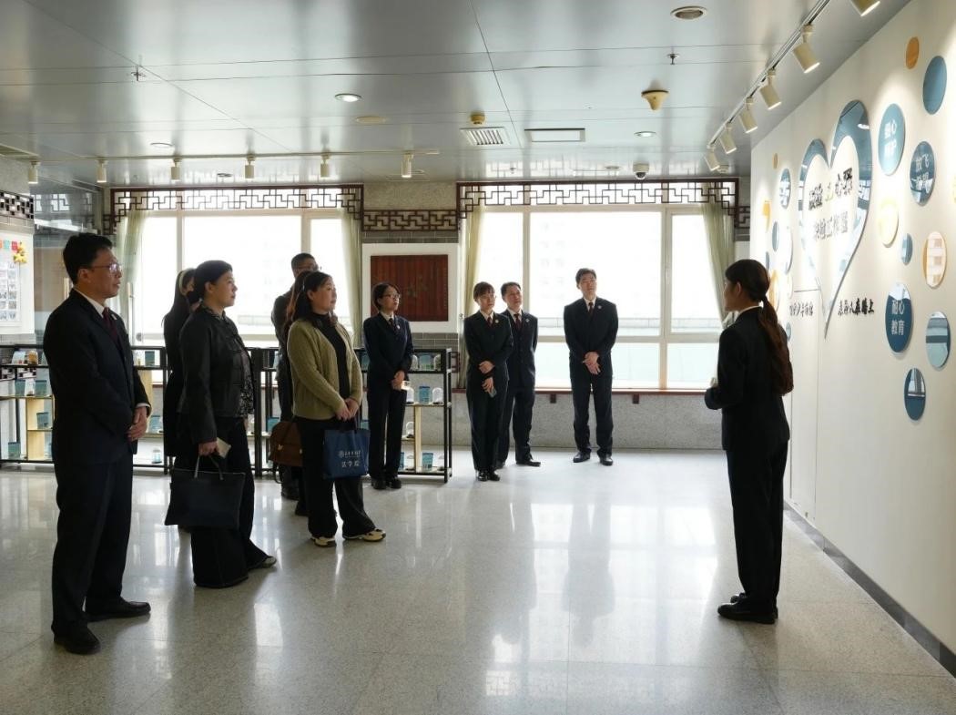 沃耘介绍了法学院的学科建设、人才培养及相关情况。北辰检察院党组成员、副检察长郭玉伟介绍了北辰检察工作基本情况、特色亮点工作及取得的成效。双方一致表示,要积极探索建立司法实务与法学教育协同育人的鲜活“样板”,实现“双向赋能”。期间,沃耘一行实地参观了北辰区人民检察院“辰检心驿”未检工作室。