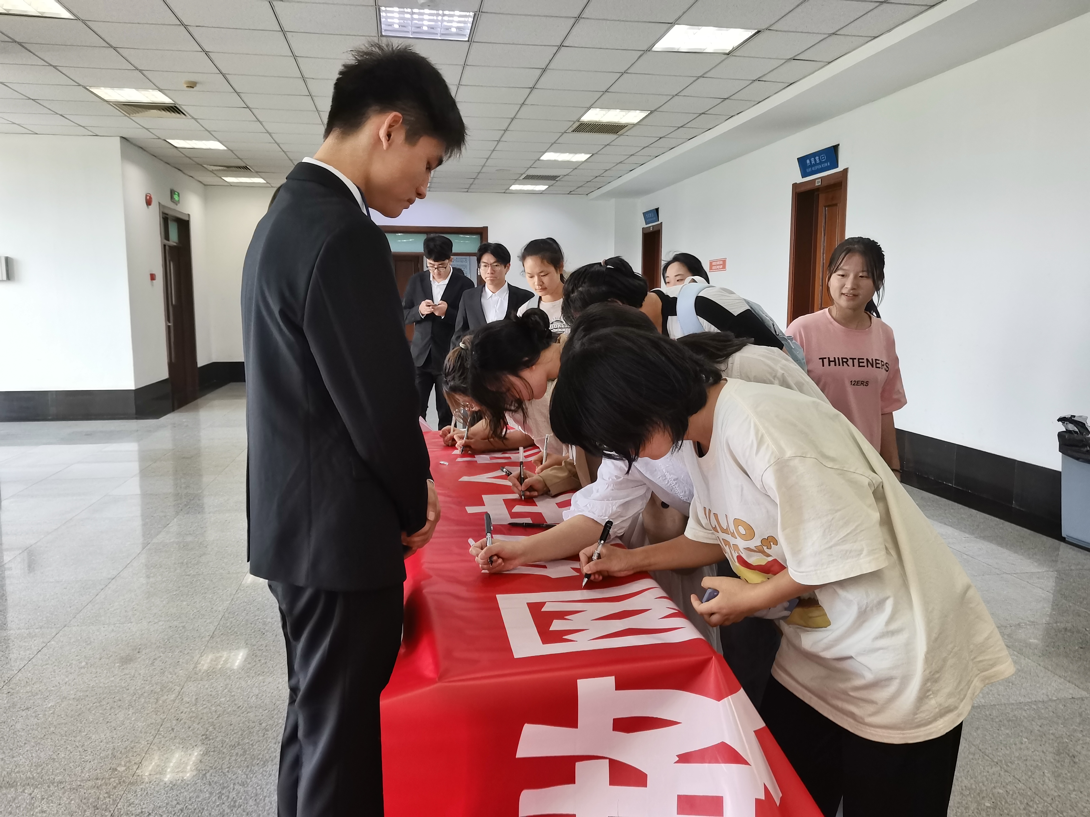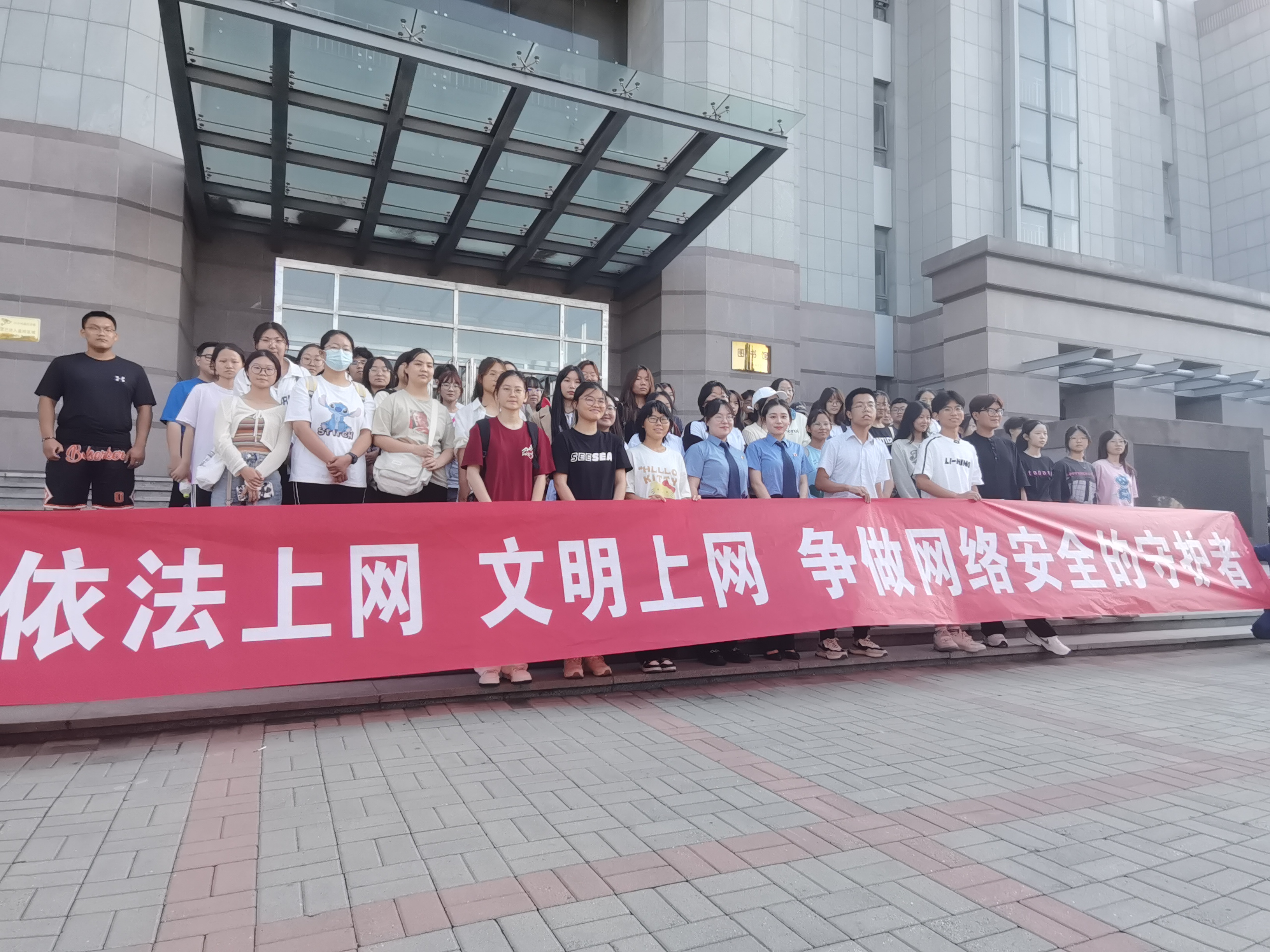 抓牢学生骨干,争做文明网民。开展学生组织骨干培训。要求他们在学习、生活中发挥模范带头作用,在面对热议话题或突发事件,能够明辨是非,自觉抵制网络不文明行为,不断提升网络素养。开展网络安全现场承诺签名仪式,组织学生骨干在宣传横幅上签名,引导学生依法上网、文明上网、理性上网,共筑网络安全防护屏障。