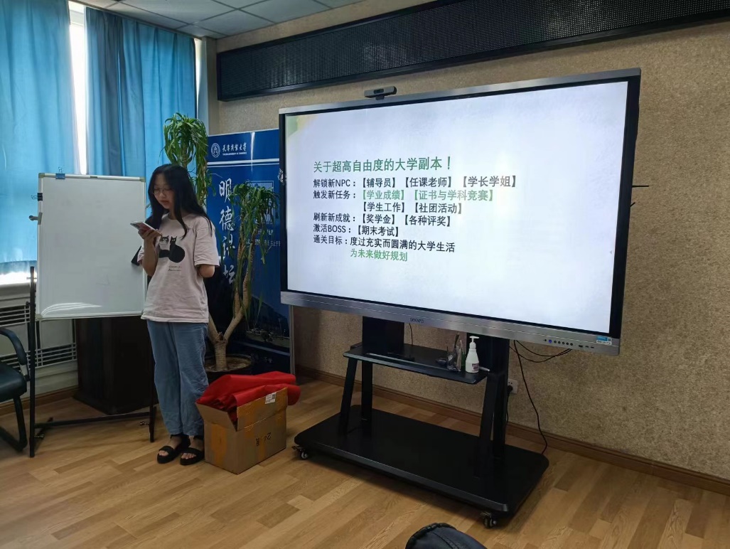 此外,活动现场还设计了丰富多彩的互动环节。辅导员朱玉组织了一系列有趣的活动,包括“你来比划我来猜”游戏,其中包含了大量的民族常识和风俗文化,激发了同学们对民族文化的探索兴趣;非遗竹编画制作和毛笔字书法活动,让同学们近距离体验和感受传统的手工艺和文化艺术的魅力。
