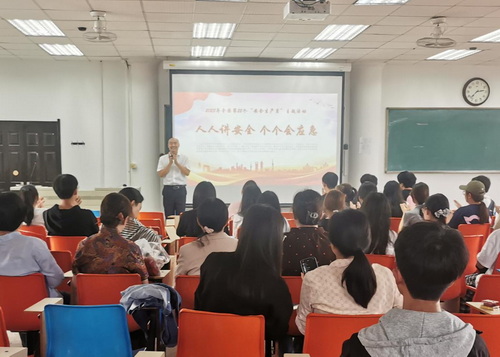 周严简要介绍了消防安全的重要性和学院每年以消防演习、新生安全教育、定期检查等形式开展的各种宣传活动,希望全体师生在培训中增强安全意识,提高应急自救的能力。王健从国家颁布的各项消防安全条例出发,以日常用电起火为例,以“意识-知识-工具”等三个角度介绍了办公环境、教学环境及宿舍安全等方面常见火灾、成因及高效自防自救措施,系统梳理了排除消防安全隐患的办法。他强调,生命重于泰山,人人应持续坚守安全的红线,预防火灾是全社会共同的责任,在座师生应提高安全意识和掌握常用灭火器的使用办法,及时消除事故隐患,筑牢安全防线。