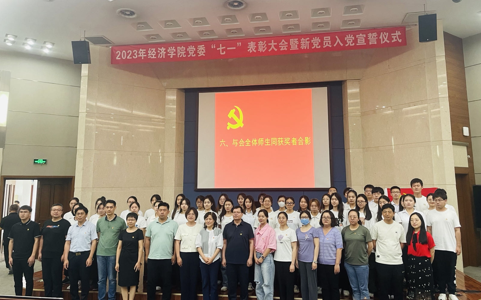 6月21日下午,经济学院党委2023年“七一”表彰大会暨新党员入党宣誓仪式在图书馆国际报告厅举行。学院班子成员、全体教职工、2023年上半年新接收预备党员参加表彰大会。会议由学院党委副书记、纪委书记马静主持。