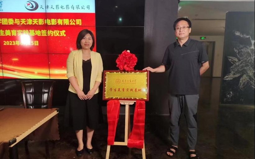 为进一步加强和改进新时代学校美育实践工作,形成多样化高质量学校美育实践体系,6月25日下午,校团委与天津天影电影有限公司于大岛影城电影历史展览基地举行共建大学生美育实践基地签约挂牌仪式。天影公司副总经理梁煜、龙云商大影厅经理董理、校团委副书记王珊、科学会堂负责老师惠志国及部分学生代表参加。