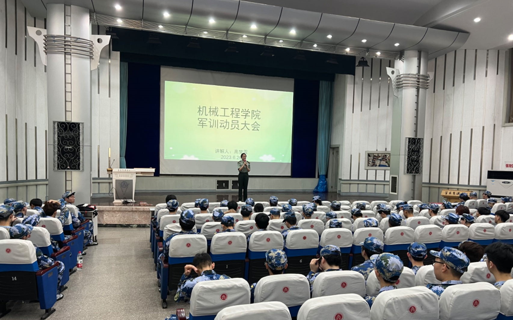 6月26日,机械工程学院军训动员大会在学术交流中心召开,学院党委副书记田海荣出席会议,辅导员高梦雪主持,600余名参训学生参加。