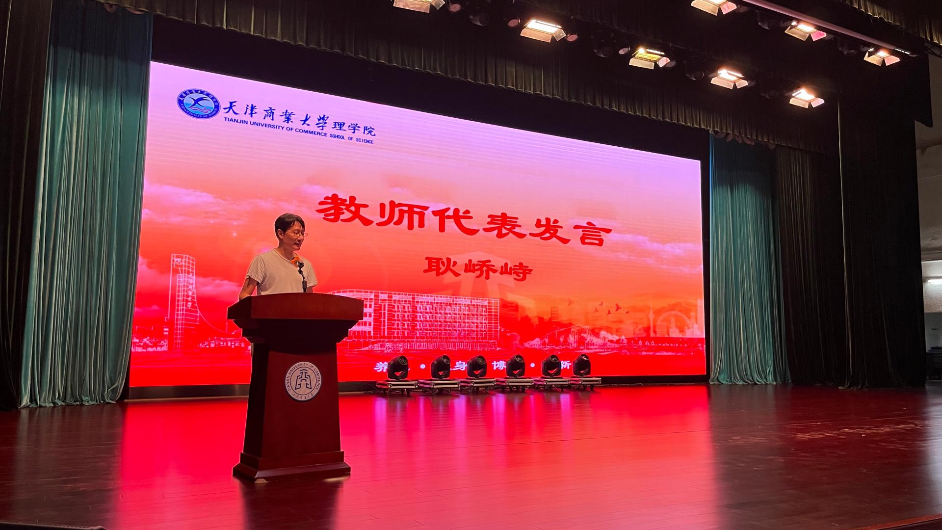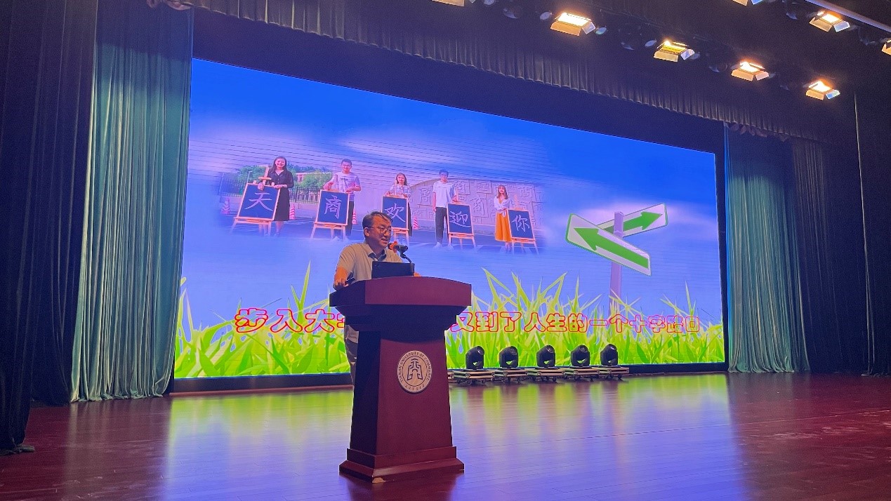 典礼上,学院领导为2023级新生班主任颁发聘书。教师代表耿峤峙阐述了“为什么而学?”“大学有什么?”“大学学什么?”,并希望同学们四年后能够具备良好的思想道德品质、扎实的专业知识技能、独立生活的基本能力、健康的同学社交圈子、健康的体魄和心理素质。