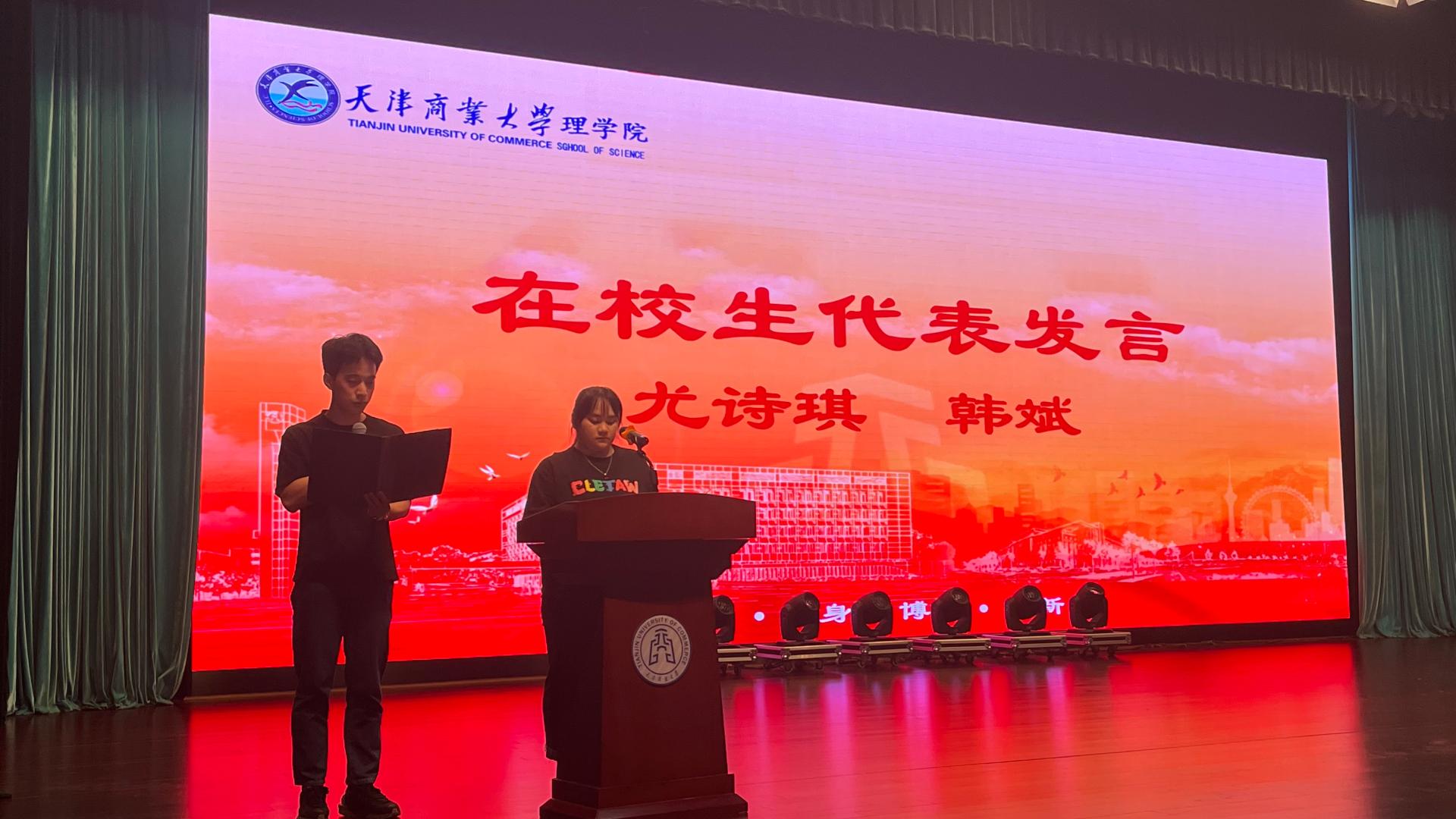理学院2017届优秀校友、三司(天津)企业管理有限公司副总经理杜培艳作为优秀校友发言,她表示非常高兴以校友代表的身份重回母校,并结合自己的创业历程与学弟学妹分享了自己的感悟。她殷切叮嘱学弟学妹们要牢记并践行“笃学、弘毅、明德、济世”的校训,更要大胆尝试,积极参与各类实践。最后,她希望学弟学妹们能够在星空放飞自己的梦想,展示自己的才华,创造美好的未来。