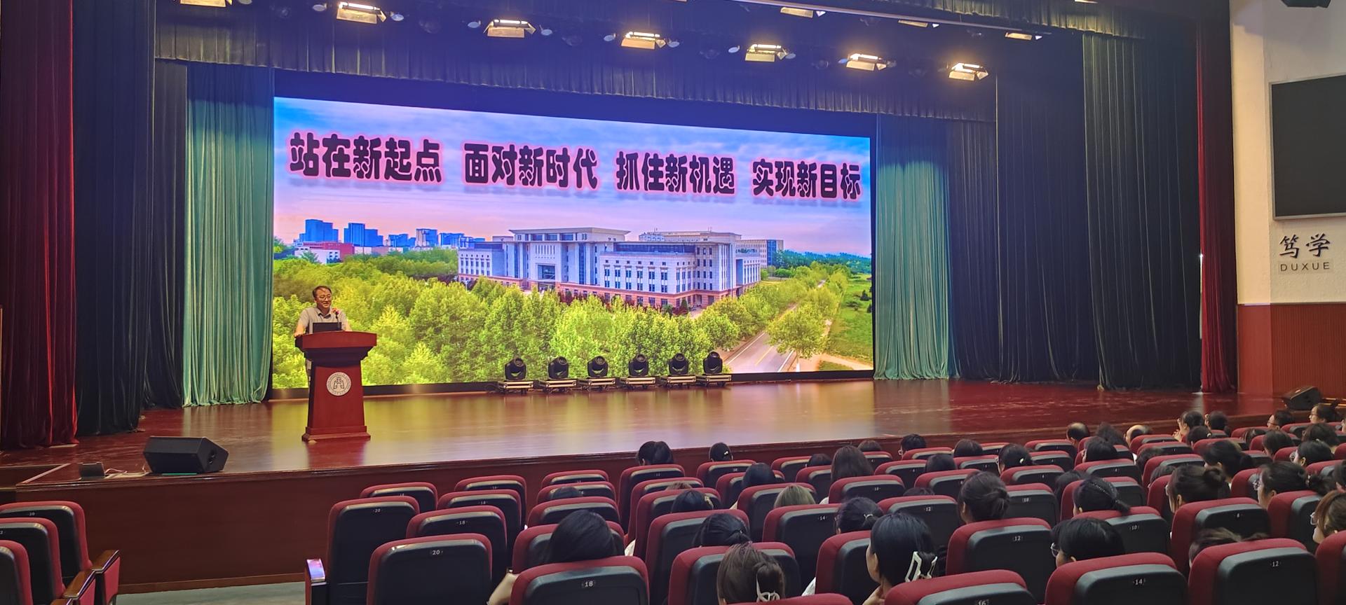 9月6日下午,理学院2023级新生开学典礼暨开学第一课在科学会堂顺利举行。理学院领导班子成员、各系室主任、辅导员、新生班主任及全体2023级新生参加。