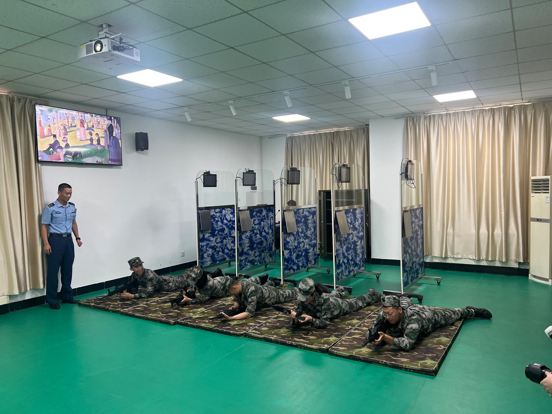 实践队走进位于天津的空军第四装备基地,首先通过观摩学习“军史长廊”,在讲解员的详细介绍下,实践队深入了解了我国空军的建设发展历程和当地部队取得的成绩与荣誉,结合歼-10真机了解我国主战飞机发展现状。随后实践队集体观看轻武器分解组装展示,通过观摩学习枪支拆解,在了解武器装备性能构造的同时,也激发了他们了解军营、关注国防的情怀。最后在基地中,实践队在部队教官的指导下开展仿真射击训练,在枪声中激发强国强军热情。通过走进军营,使实践队在思想上受到一次深刻的爱国主义教育,激发热爱国防、热爱人民军队的浓厚情怀,为开展红色教育实践活动积累生动的现实素材。