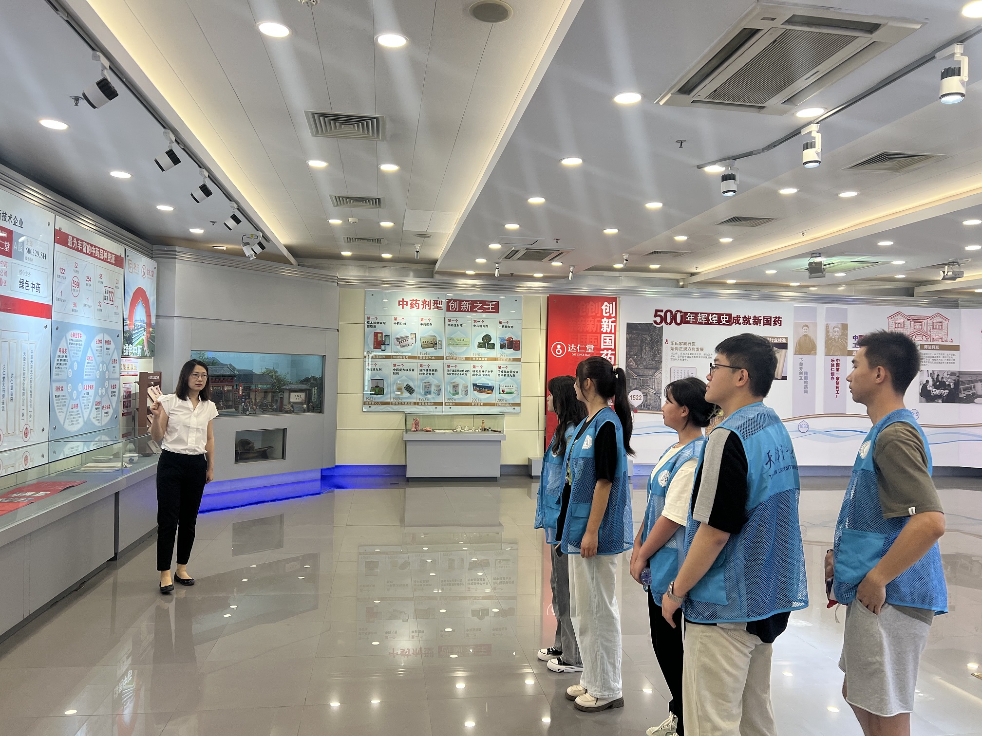 实践队先后来到天津长芦汉沽盐场、达仁堂国药文化展览馆、津药达仁堂现代中药产业园调研参观。在汉沽盐场,实践队参观盐业发展展览馆,体验古法制盐和盐塑,引导实践队从多个视角了解天津,从汉沽盐场了解天津盐铁经济的历史。在津药达仁堂现代中药产业园重点参观了天津医药展览馆、津药达仁堂自然人文陈列馆、“百年老字号”达仁堂制药厂、“卫药”代表隆顺榕制药厂和集成现代中药提取技术的中新制药厂等两个展览馆、三个参观区域,领略了天津中药历史文化知识以及中药现代化进程,感受中医药传承精华、守正创新,逐渐走向世界、走向现代化的重要历史成就,对中医药千百年来的重要地位、发展历史及文化底蕴有了更加深刻的认知,在基层社区宣传教育中融入中医药文化基础知识。