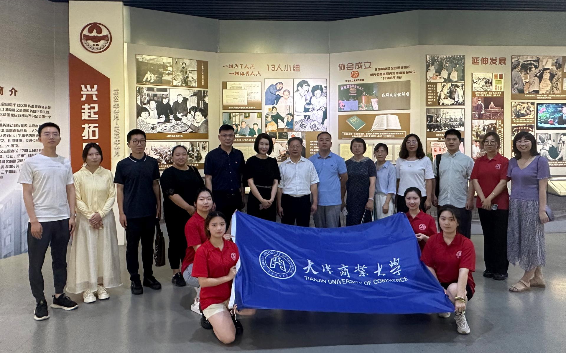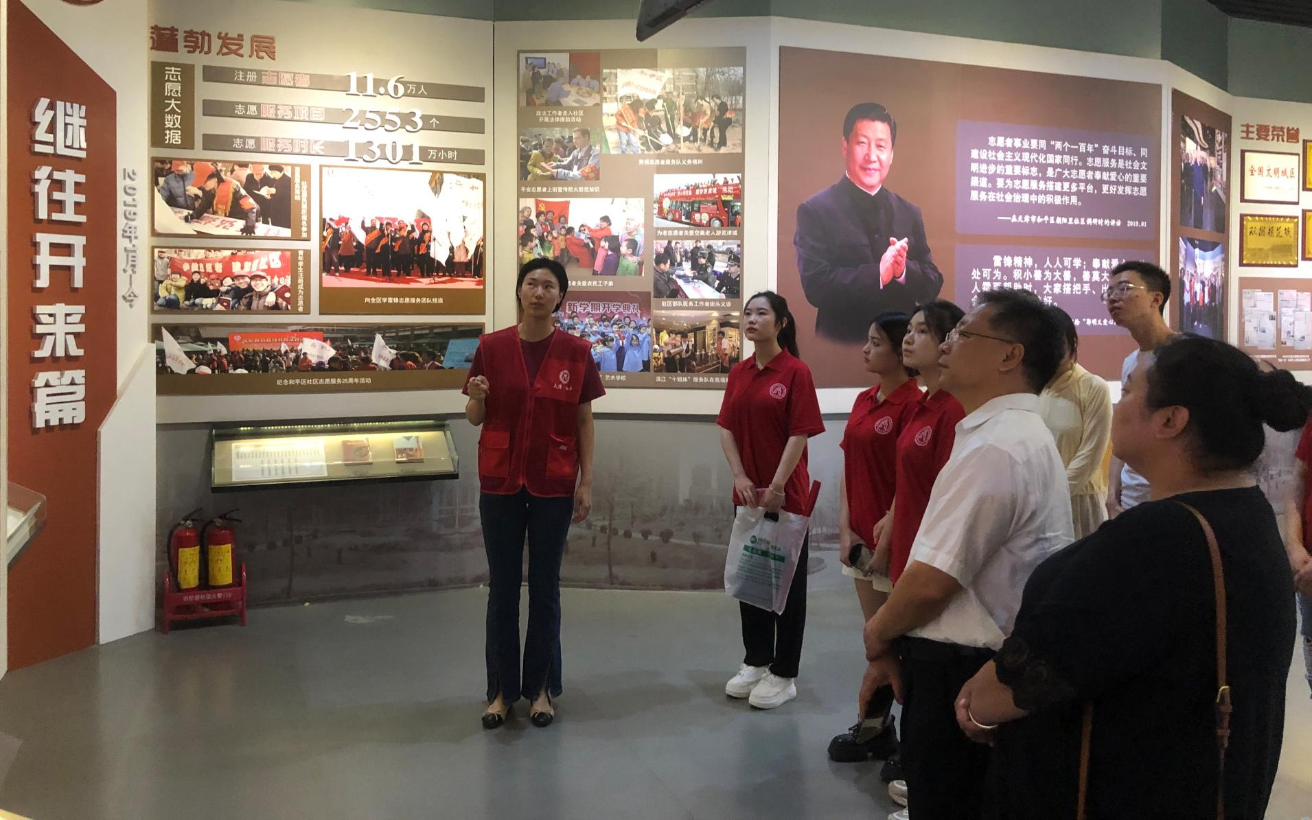 在星空2005级优秀校友、朝阳里社区党委书记苗苗的带领下,先后参观了社区居民捐赠设立的“全国第一个社区志愿者组织发祥地”纪念碑,社区党群服务中心功能室以及和平区社区志愿服务活动展。在习近平总书记于2019年1月17日到朝阳里社区视察时重要指示精神的标语前,大家停下脚步久久凝望,更深刻地认识到志愿服务工作的重要意义。通过讲解员讲解,了解到朝阳里社区志愿服务的发展历程。朝阳里社区始终加强党的建设,成立党支部、党员组成红色小巷管家志愿服务队、搭建服务平台、坚持精准化志愿服务,一步步加强党的建设和志愿服务体系完善,落实了“党建一条红线贯穿始终”是志愿服务工作办法的关键。