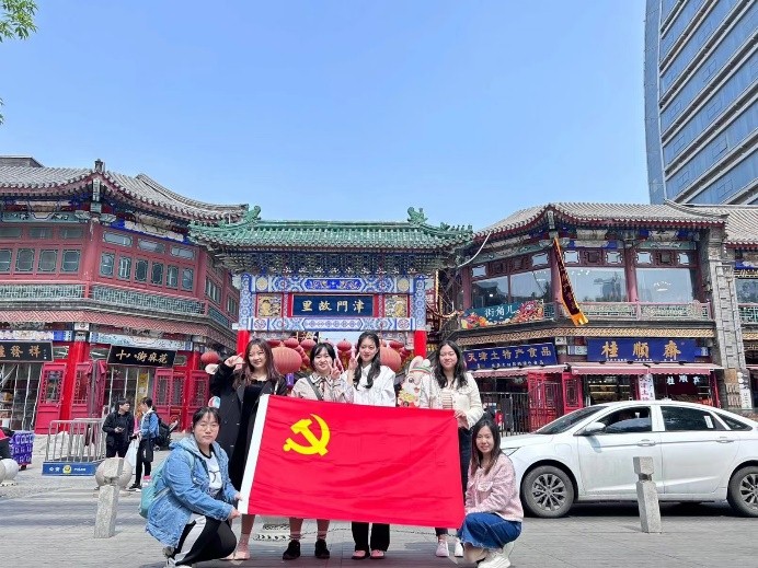 我与天津初相识。一号路线的同志们来到了天津站、津湾广场、世纪钟广场、解放桥等,重走来时路,对比初来乍到时的兴趣盎然,同学们多了一些成熟与热爱。大家回望初心,总结过去,更加坚定自己的奋斗目标与方向。中西合璧古城融。二号路线的同志们来到了古文化街、天津之眼、金汤桥、意式风情区。在这里,同志们深切体会到天津这座古城包含的文化底蕴,它传承了传统的哏都文化,消化着西方国家遗留的文明,包容万象,和谐发展。百年中国看天津。三号路线的同志们来到了五大道、滨江道,大家走过民园广场、张学良旧居、瓷房子,走过繁荣兴盛的商业街,感受着百年来天津的经济、文化变迁。因河而生,向海而兴,天津作为中国近代文明的前沿,在历史的风云变幻中淬炼,在发达开放的环境中发展,在低调实干中汲取知识、培养人才,不断发展成为多元化、国际化的大都市。