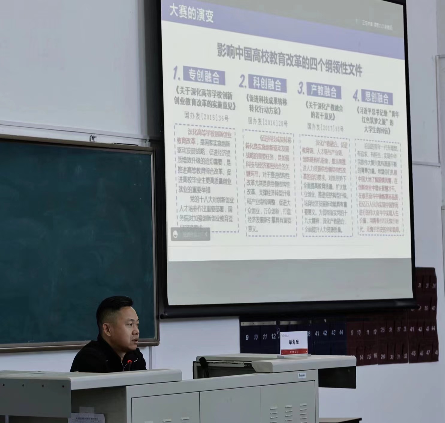 为促进学院学科竞赛工作高质量发展,提升大学生创新创业能力和参赛水平,3月15日,国际教育合作学院与星空XK体育大学生创业中心共同举办了第九届“互联网+”大赛培训会暨星空“创业大讲堂”学院巡讲。培训由入库教育部全国万名优秀创新创业导师、“互联网+”大学生创新创业大赛专家委员会委员莘海东主讲。200余名学生及老师参加。