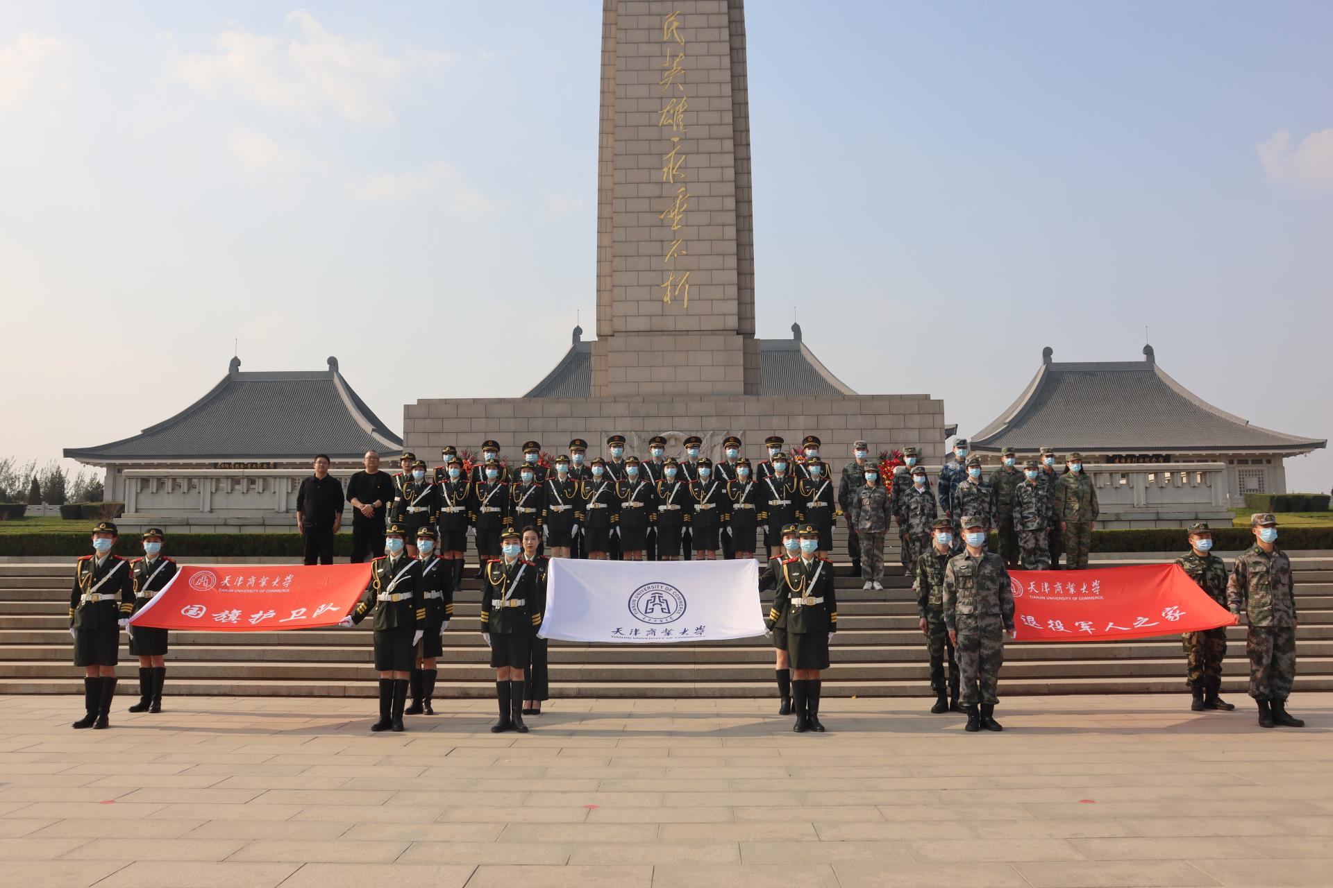 清明节前夕的天津市烈士陵园庄严肃穆,国旗护卫队队员和退伍学生代表踏着整齐划一的步伐在巍峨的纪念碑前集合。在雄壮的国歌声中,国旗手正步铿锵,托举国旗入场,在场师生全体肃立,迎国旗、唱国歌,学生代表将花篮缓步送上纪念碑前,全场默哀三分钟。默哀后,国旗护卫队队长吴忠燕和退伍学生代表宋伟先后发言,表达对革命先烈的敬仰与哀思,表达了传承红色基因,坚定砥砺前行的决心和信念。祭扫活动结束后,同学们参观了烈士纪念馆和平津战役纪念馆。