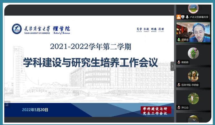 5月20日,理学院召开了以“务实创新,推动研究生教育高质量发展”为主题的学科建设和研究生培养工作研讨会,会议由研究生培养负责人卢志义教授主持,以线上的方式进行,学院研究生导师与任课教师参加会议。