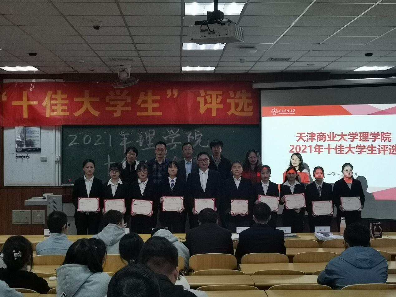 评委们依据参评学生的综合表现对德育情况与现场表现两项指标进行现场打分,与学生基本情况赋分相加,最终确定刘欣亚、齐琪、魏聪颖、杨致远、林芯如、陆惠敏、郑岚月、王胜月、李晶晶、许晓倩10位同学为理学院2021年十佳大学生,并由大会评委为获奖学生颁发荣誉证书。