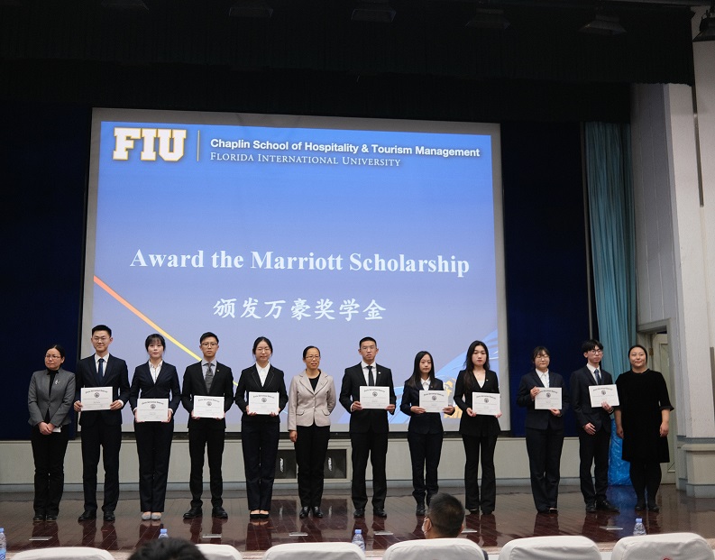 典礼在庄严的国歌声中拉开帷幕。国佛罗里达国际大学酒店与旅游管理学院院长Michael Cheng通过视频表达了对酒店管理合作项目学生的期许与祝福,希望同学们不断努力奋斗,顺利完成学业。万豪集团代表魏馨鼓励同学们找准自己的发展方向并为之不断努力,成为行业中的顶尖人才。