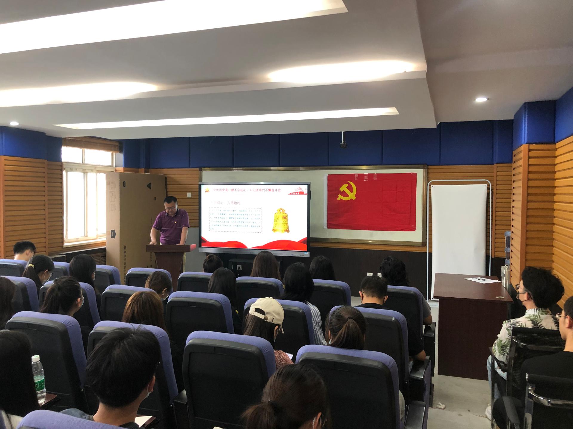 6月8日, 艺术学院在6教301会议室开展党史专题党课活动,学院党委书记罗晖以“重温党的百年光辉历程,深刻感悟党的初心使命”为主题,为学院教师党员讲授党课。师生党员共102人参加。