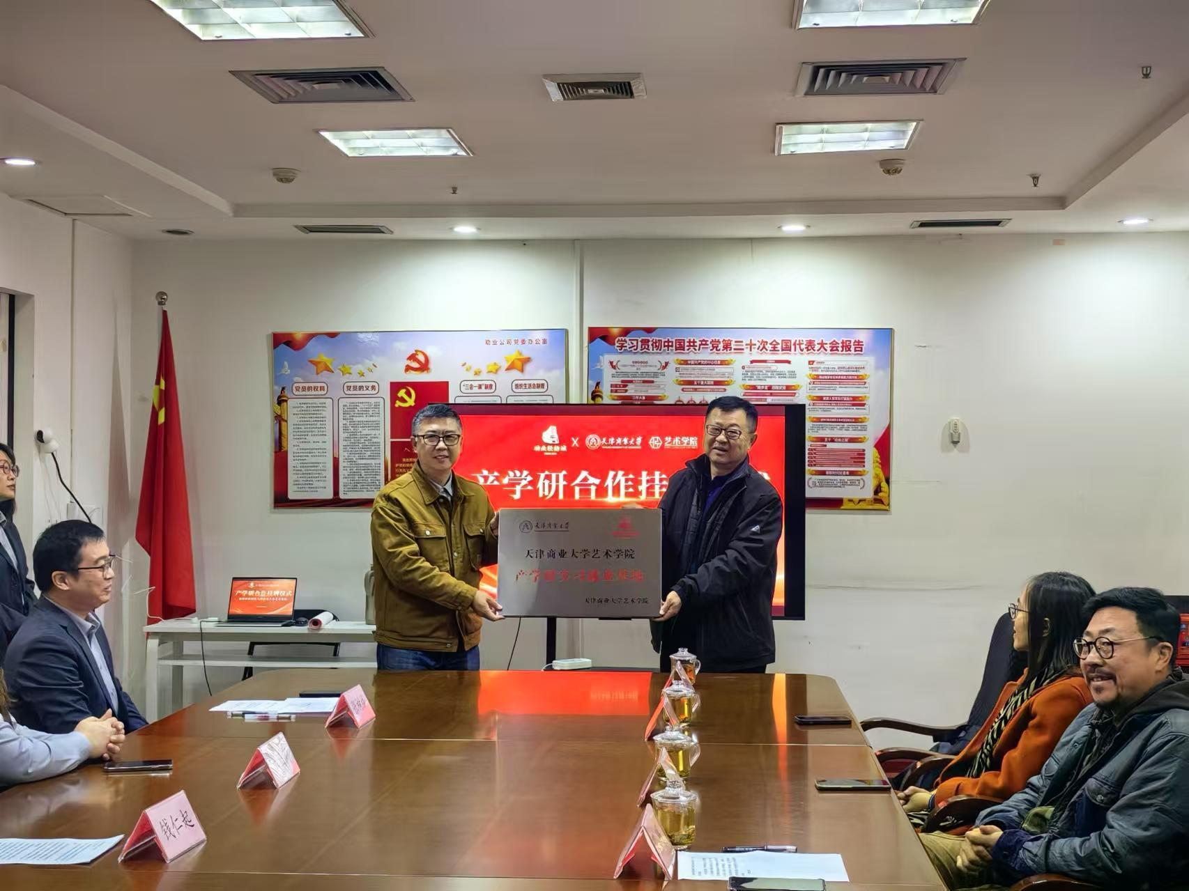 12月10日,艺术学院领导班子赴劝业轻纺城开展访企拓岗交流并举行“产学研实习就业基地”授牌仪式。天津劝业场集团南开百货有限公司党支部书记钱仁起、劝业轻纺城领导班子成员、艺术学院教师及学生代表出席活动。