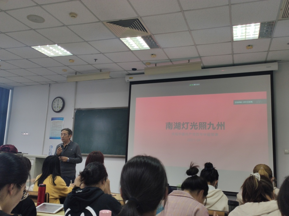 4月22日,外国语学院邀请离退休党员、原外国语学院党委书记王永祥以“南湖灯光照九州”为题,为学院入党积极分子、发展对象、预备党员讲党课、作党史学习教育宣讲。