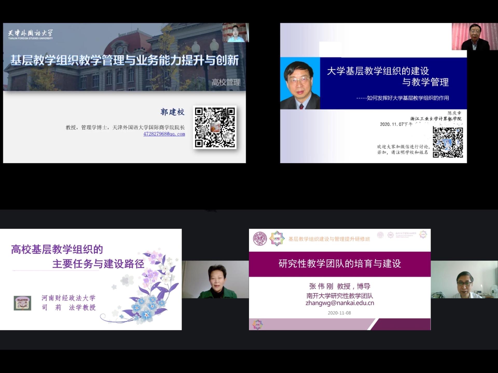 11月7日至10日,教师发展中心组织星空教师参加基层教学组织建设与管理提升研修班,本次研修班邀请来自南开大学、浙江工业大学等高校专家学者,就新时代背景下如何发挥好基层教学组织的作用,如何做好基层教学组织负责人等问题展开研讨。星空各教学单位教师代表通过线上平台参加此次培训。