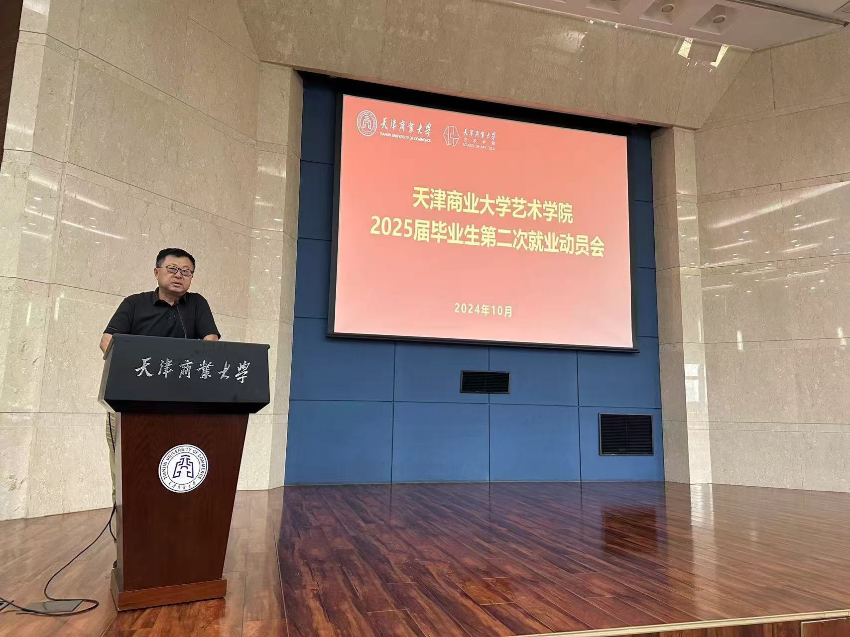 10月16日,艺术学院在图书馆国际报告厅召开2025届毕业生第二次就业动员会,学院领导班子成员、各系系主任、全体教师、毕业班全体学生参加本次会议。