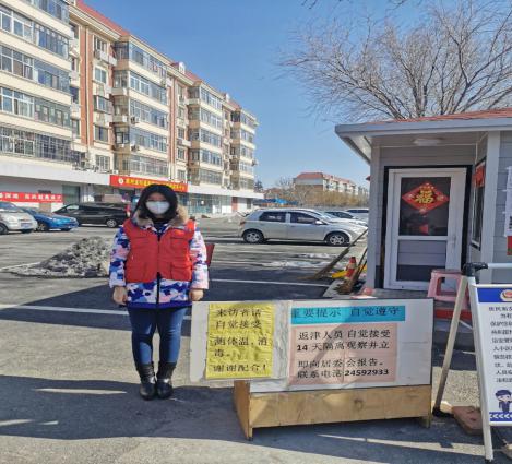 姜心昊同志在社区门口进行轮值志愿服务