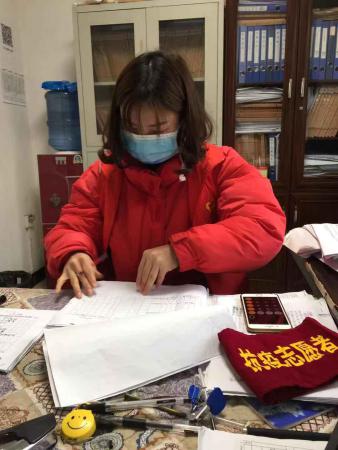 退伍军人徐富荣同学在整理防疫登记材料