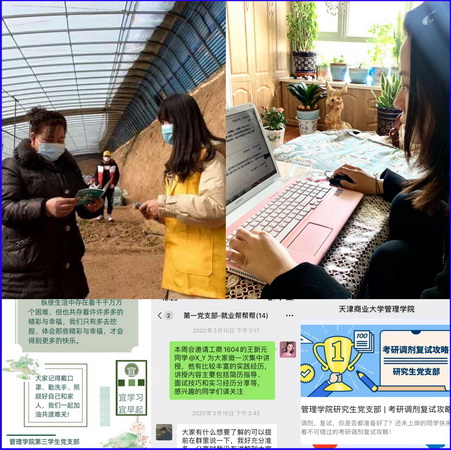 助力教学,党员有妙招。停学不停课,学校开展线上教学以来,第二学生党支部组织党员进入学院各班级的线上课堂,开展服务、帮扶、监督工作,为低年级同学们进行答疑解惑、学习指导,协助授课老师维持课堂秩序,保证线上课堂出勤率,提升了线上课堂的授课效果。第四学生党支部为学业预警的低年级学生开展“一对一”学业帮扶,督促他们养成良好的学习习惯;第五学生党支部针对所在专业英语四级通过率不高的问题,开设英语四级线上小课堂,建立学习英语在线监督小组。