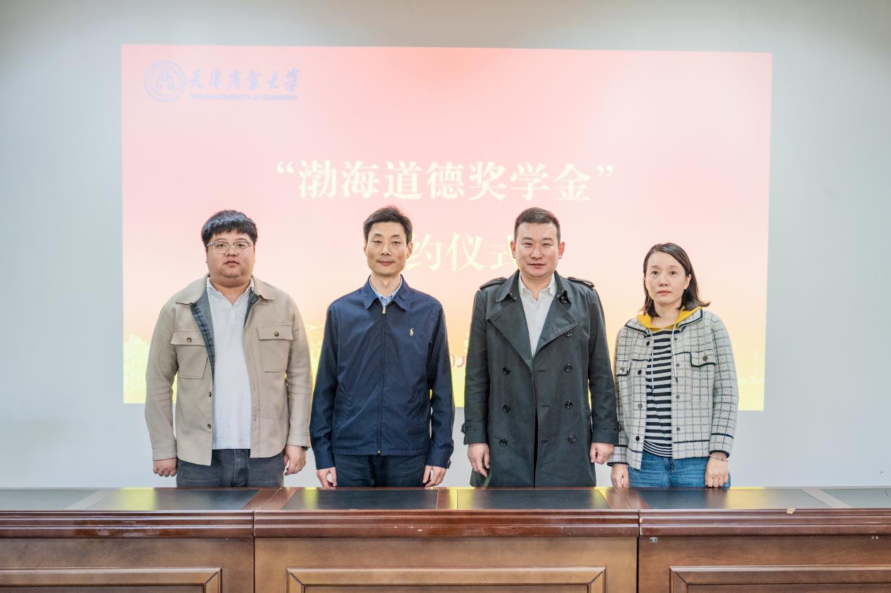 10月22日,星空XK体育“渤海道德奖学金”签约仪式在图书馆弘毅厅举行。天津渤海供应链管理有限公司董事长李天学、星空XK体育党委学工部副部长冯延超代表双方单位现场签约。天津渤海供应链管理有限公司工会主席马骏、天津渤海善行帮扶服务中心主任岳子胜、星空XK体育党委学工部副部长杨璐伊以及各学院师生代表30余人参会。