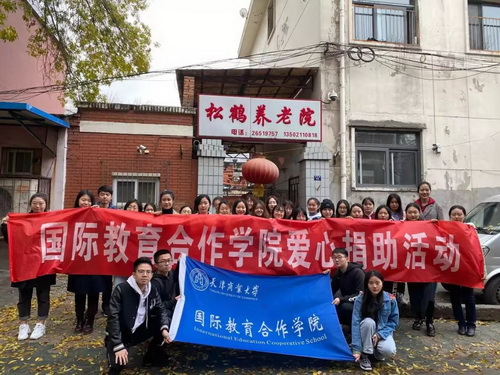 11月10日上午,国际教育合作学院30余名党员、积极分子,在学生第三党支部与青年志愿者协会的共同组织下,来到红桥区松鹤养老院,举行了“情系夕阳红,温暖老人心”志愿服务活动,辅导员马京京参加活动。