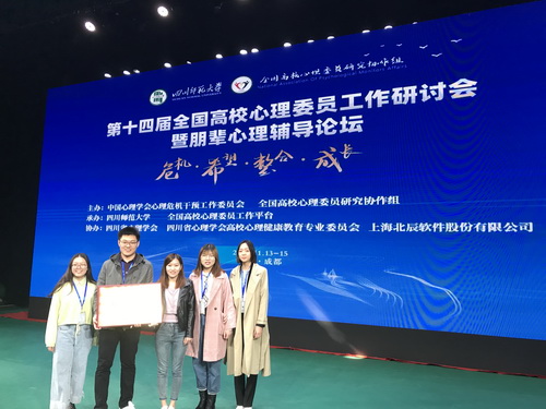 11月14日至15日,第十四届全国高校心理委员工作研讨会与朋辈心理辅导论坛在四川师范大学举行。星空与其他理事单位高校共同接受“全国高校心理委员研究协作组理事单位”授牌,与北京师范大学、北京交通大学、重庆大学、东北大学等十余所高校共同作为心理委员工作典型高校在大会上作典型经验介绍。星空国际教育合作学院刘俐杉,机械工程学院赵谱两名同学获评第二届“全国百佳心理委员”,生物技术与食品科学学院陈婉获第二届“全国百佳心理委员”提名奖,心理健康教育中心主任杨爽担任此次全国百佳心理委员评选评委。