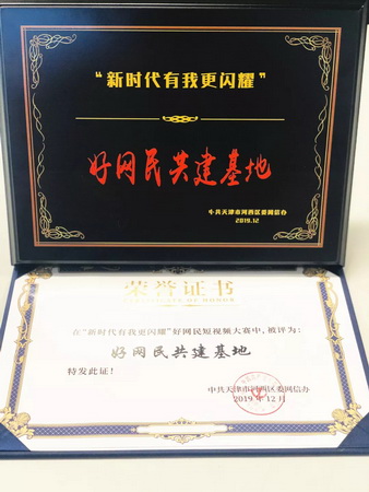 12月17日下午,由中共天津市河西区网信办举办的“新时代有我更闪耀”好网民短视频大赛颁奖仪式在河西区网信大厦举行。经过前期的主办方评审和网友投票等环节,星空赴新疆和田实习支教团拍摄制作的快闪作品《我们都是追梦人》斩获“优秀好网民”奖项,学校获评“好网民共建基地”。