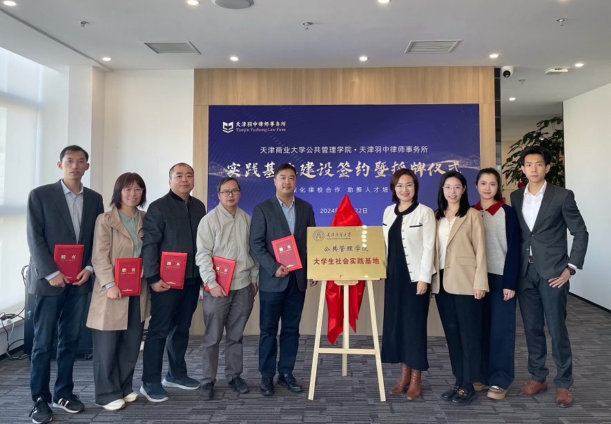10月22日下午,公共管理学院与天津羽中律师事务所实践基地建设签约暨揭牌仪式在羽中律师事务所举行。公共管理学院院长薛立强教授,公共管理学院行政管理系系主任张志泽副教授,公共管理学院行政管理系副主任赵银红副教授,公共管理学院行政管理系李勇军教授、沙金副教授,天津羽中律师事务所主任、党支部书记翟中玉,数字资产中心主任张蕾、刑事中心副主任石拓、行政人事主管吕晶参加本次活动。