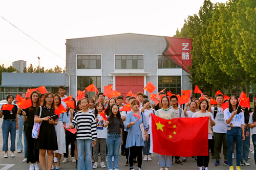 “一心装满国,一手撑起家。家是最小国,国是千万家。”伴随着一首《国家》,理学院的学生代表们手持小国旗,脸贴爱国贴,从校园各个方向向学校篮球场旁的小广场汇聚。