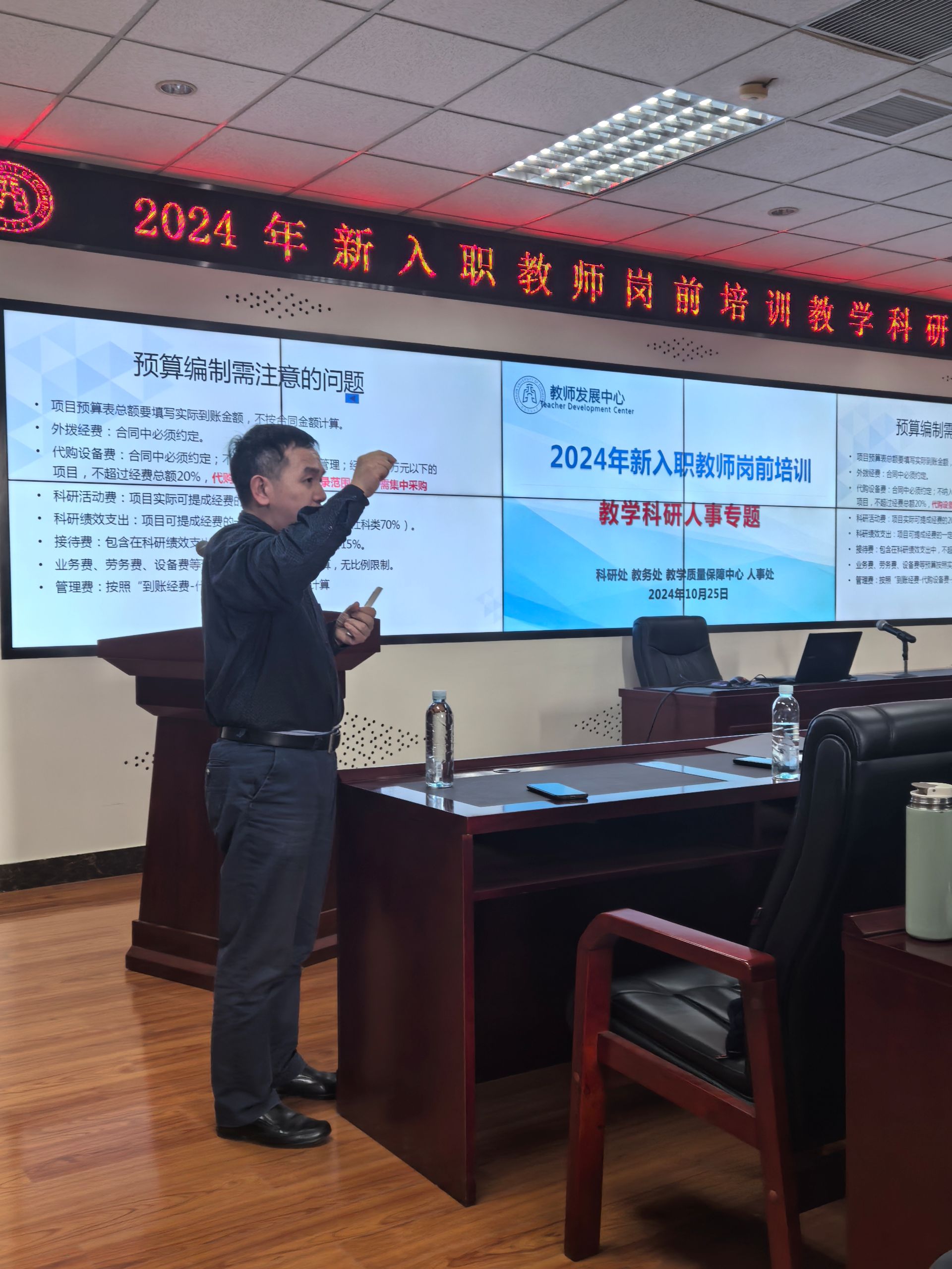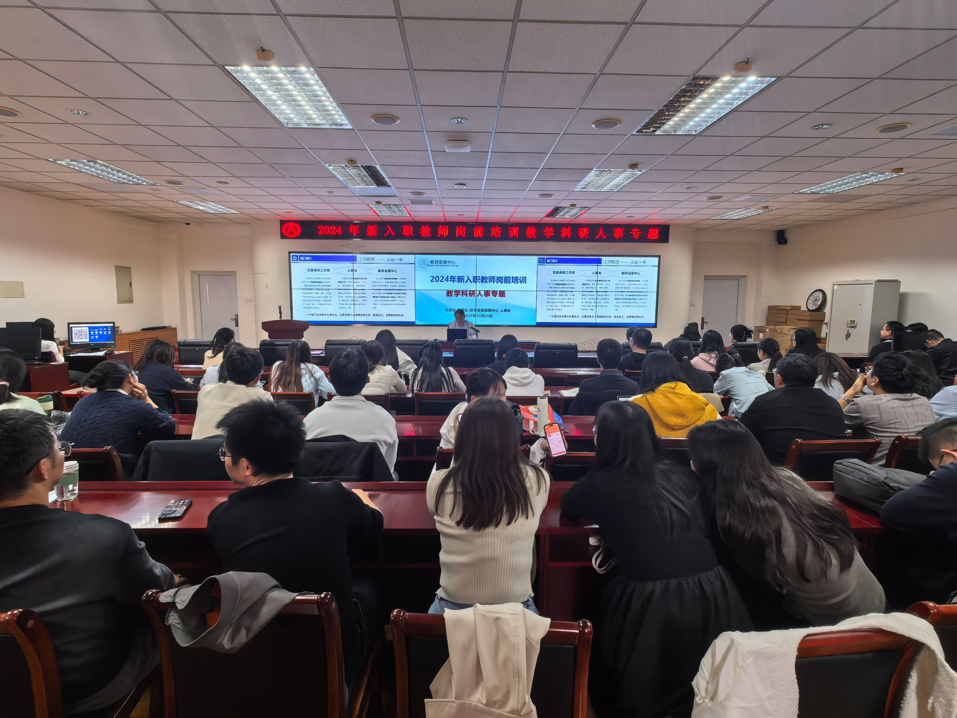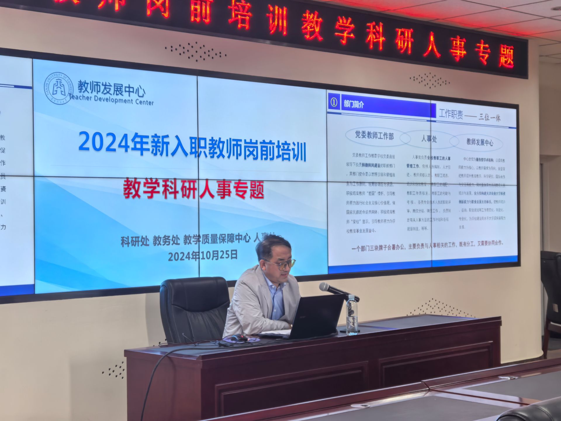 为进一步提升新入职教师的职业素养和教学科研能力,努力建设一支政治素质过硬、业务能力精湛、育人水平高超的高素质专业化创新型教师队伍,10月25日,教师发展中心在4号教学楼404举办2024年新入职教师教学科研人事专题岗前培训。人事处处长安建业,科研处处长刘斌,教务处副处长姜书浩、张陶然,教学质量保障中心副主任庆来刚分别就教师成长成才、科研工作规划、专业建设与课程建设、教学规范、教学质量保障等内容进行主题培训。各学院新入职教师近70人参加此次培训。
