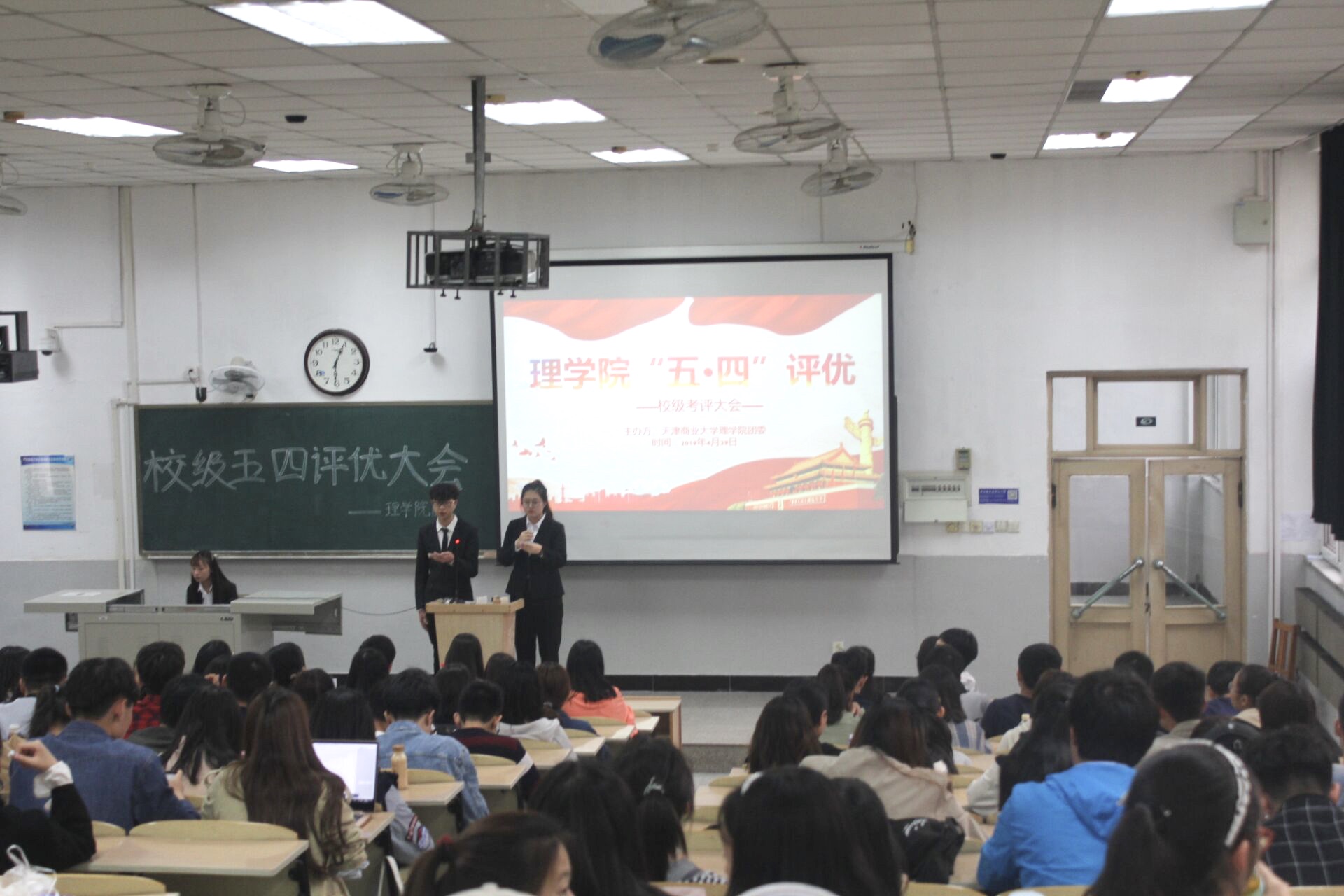 4月29日晚,理学院2018-2019学年度五四评优大会在阶四举行。学院辅导员、青年团员代表100余人参加。