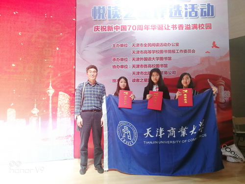 5月14日,由天津市全民阅读活动办公室和天津市高等学校图书情报工作委员会主办的第五届“书香天津•大学生校园悦读之星评选活动”决赛在天津外国语大学举行,来自我市34所高校的近400名师生代表参加此次决赛。星空公共管理学院学生许丹阳在决赛中获得三等奖,法学院学生李沛橦、信息工程学院学生吴慧青、理学院学生杜梦雪获网络人气奖。