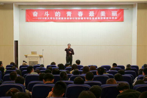 宣讲会上,师生一起观看了《新疆是个好地方》和《志愿西行追梦新疆》专题宣传片,宣传片呈现了西部地区的历史地理、风土人情及志愿者的工作、生活状态,展示了志愿者“志愿西部 青春无悔”的精神。随后,巴州和静县党委宣传部服务志愿者李霞、和田地区和田县朗如乡中心小学支教老师张鑫宽、和田地区墨玉县团委服务志愿者侯慧那等优秀志愿者代表一一讲述了自己扎根西部,服务基层人民群众的工作经历。和田团地委党组织成员、团委副书记颜伟向同学们具体介绍了西部计划新疆专项的补贴标准、政策保障以及留疆政策,鼓励同学们积极响应国家号召,珍惜机遇,投身西部建设,为祖国的繁荣发展建功立业。