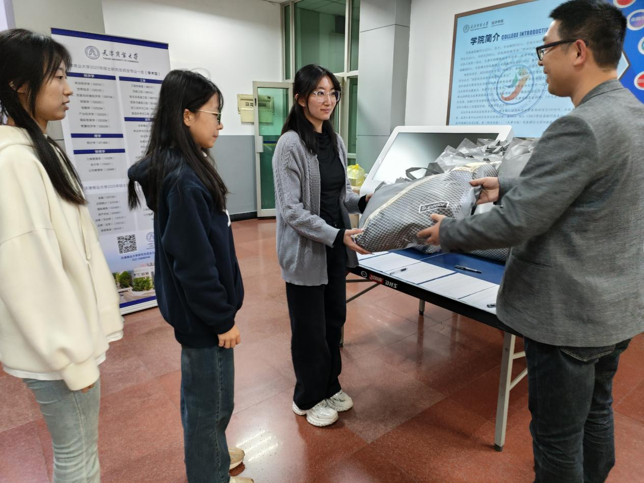 经济学院在学院一楼设立临时服务站点,学院党委副书记赵立彬、2024级辅导员以及学院志愿者逐一将毛毯发放到2024级家庭经济困难学生的手中,让同学们真切地感受到了来自学院无微不至的关怀和爱护,这份爱心让大家收获了一份别样的温暖与慰藉。