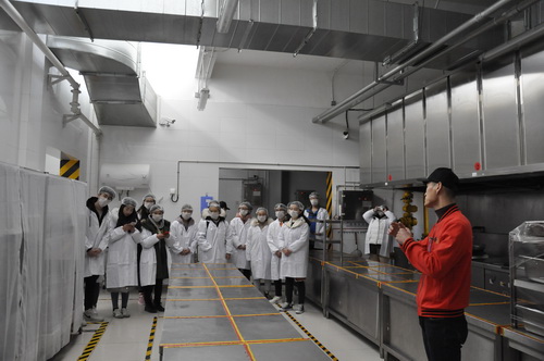 12月20日中午,后勤处组织开展了本学期第二次“校园食堂开放日”活动。学校大学生权益保障中心的20余名学生食品安全监督委员会成员首先来到新建成的食材配送中心,参观了主食区、副食调料区、冻品陈列区、冷库区、采购管理区、入库登记区、出库登记区、食材快速检测室、视频监控系统和价格与食材质量检测结果公示区等。学生食安委成员还来到学生食堂参观了主副食库、一次二次更衣间、毛菜间、粗加工间、厨房烹饪区、面食加工区、售餐区、就餐区和“明厨亮灶”监控系统等。